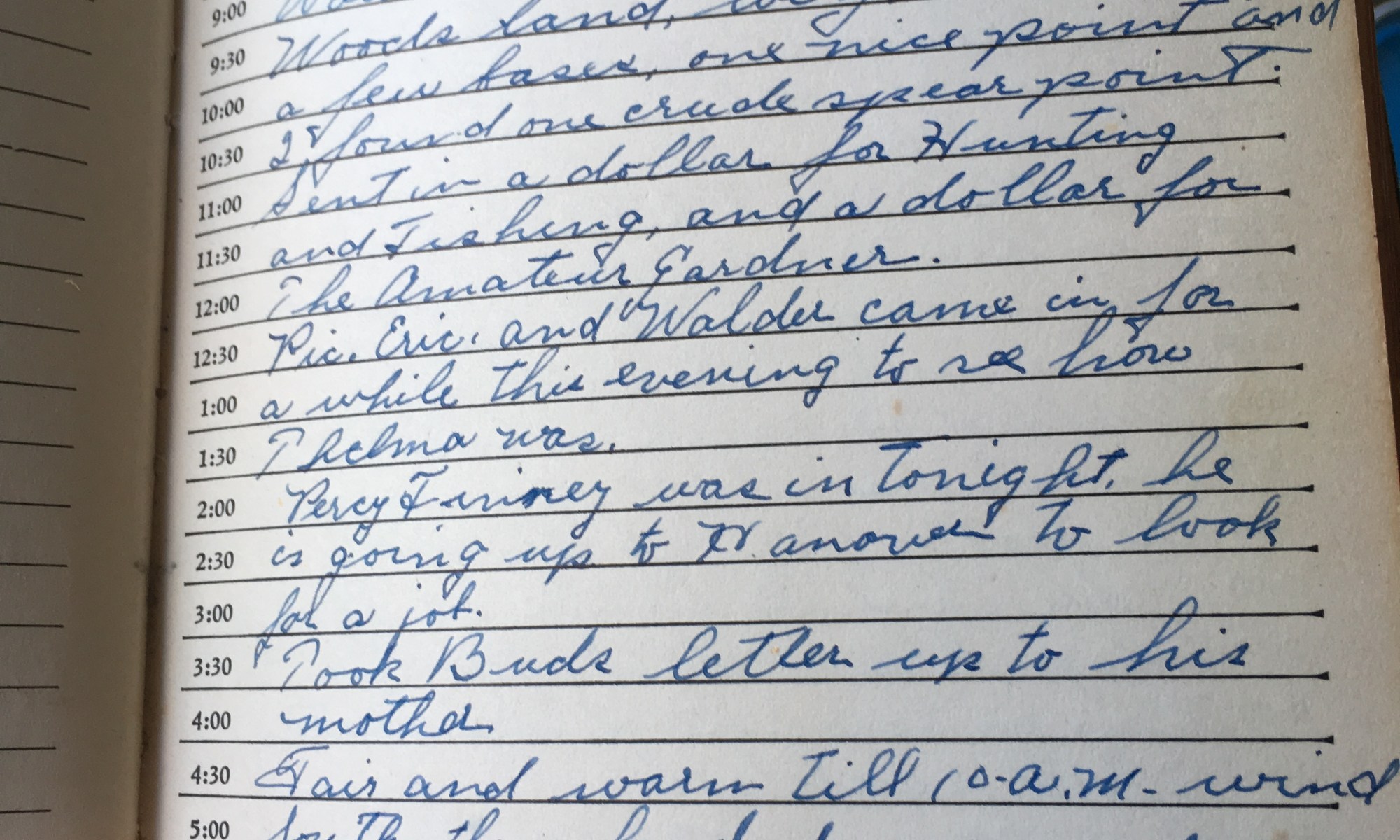 (A journal entry from this day in 1943 by my great-uncle, Jesse Brewer.)