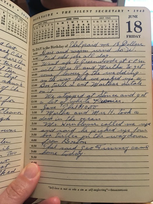 Went up to Greenwoods at 5PM with Mrs. H. And Martha to get some flowers for the wedding. On the way back we picked up a Box turtle and I cut Martha’s initials on it.