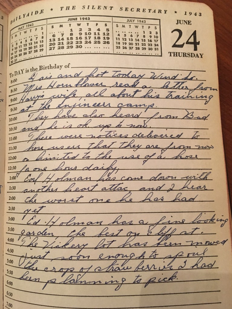 Mrs. Hornblower read a letter from Harry’s wife, all about his training at the engineers camp.