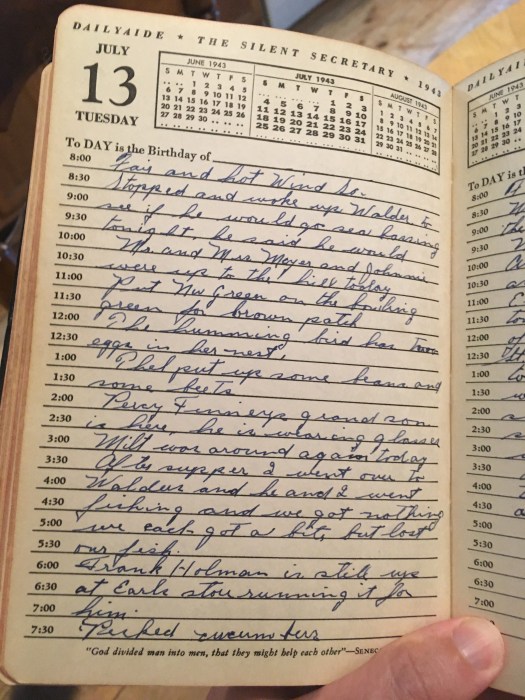 After supper, I went over to Walder’s and he and I went fishing and we got nothing. We each got a bite, but lost our fish.