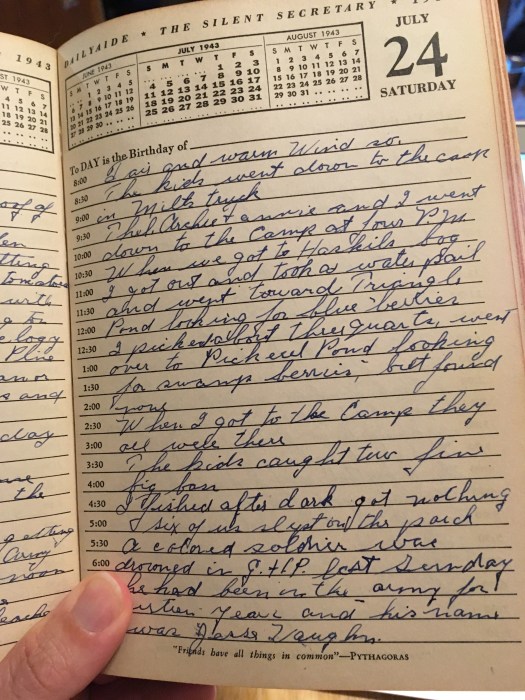 When we got to Haskills bog, I got out and took a water pail and went toward Triangle Pond looking for blue berries. I picked about three quarts, went over to Pickerel Pond looking for swamp berries, but found none.