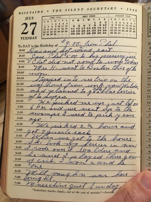 Stopped in to see Eric on the way home from work, saw Walder and planned to go after blueberries after supper.