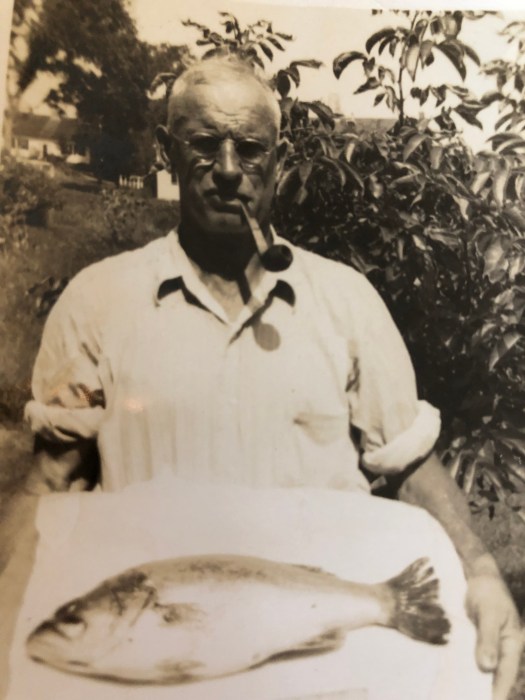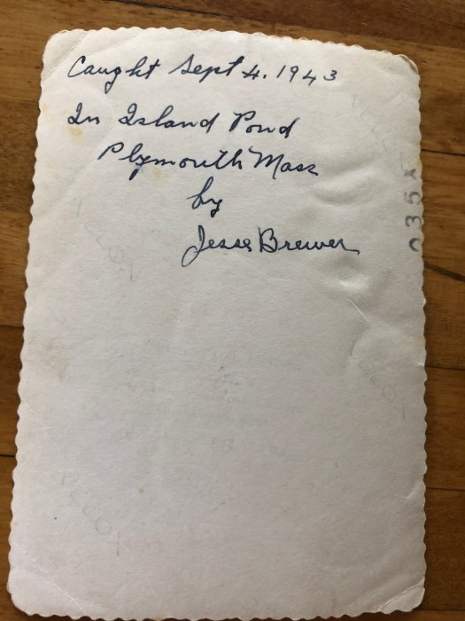 If you look at the photos on the blog, I submitted a picture of that fish taken on that day, along with a picture of the reverse of that photo documenting his catch, and the very day, in his handwriting. This amazing photo was given to me by my cousin Suzanne Stefani Ferreira when she found that I did not have a picture of my grandfather. I think it is wonderful because this is what he looked like in the very year we are reading about.