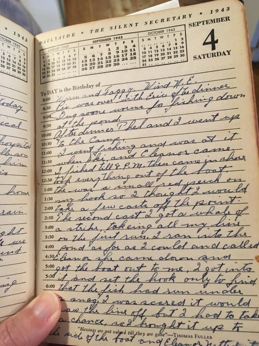 I went fishing was at it when Ski, Eleanor came. I fished toll 8 pm then came in shore, took everything out of the boat.