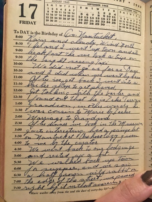 After dinner we took in the museum, quite interesting, had a pamphlet on Nantucket archaeology given to me by the curator.