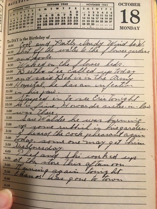 Bertha Lee called up today and said Bob is in the Army Hospital, he has an infection in his jaw.