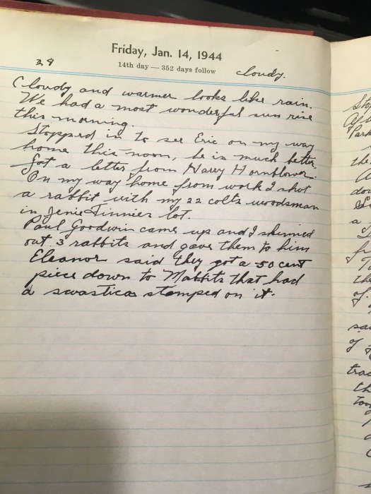 Eleanor said they got a 50 cent piece down to Mabbits that had a swastika stamped on it.