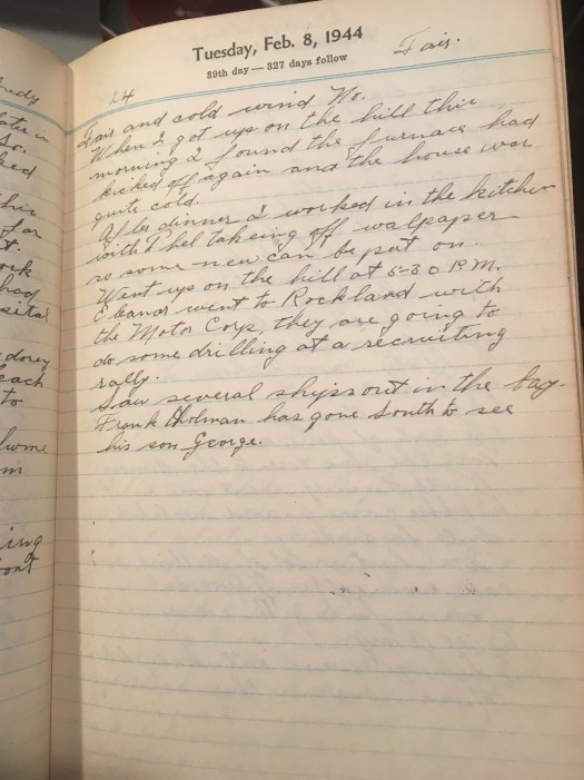 After dinner I worked in the kitchen with Thel taking off wallpaper so some new can be put on.
