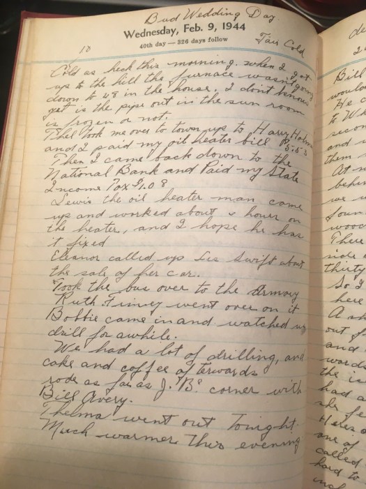 Thel took me over to town up to Harry Holmes and I paid my oil heater bill $5.53.