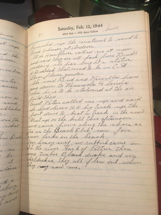 Mrs. Hornblower called me at noon and said they are all back from Bud’s wedding, she as bought a statue of Buddah that used to be in C. A Stoner flower garden. She said Bud and Priscilla have gone down to Pensacola Florida where he is to be stationed at the air field there.