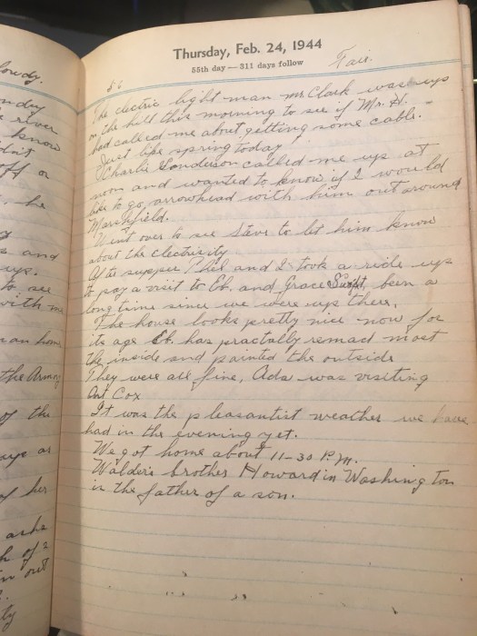 The electric light man Mr. Clark was up on the hill this morning to see if Mr. H had called me about getting some cable.
