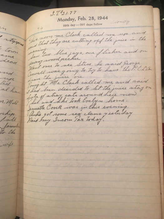 This noon Mr. Clark called me up and said that they are cutting off the juice in the morning.