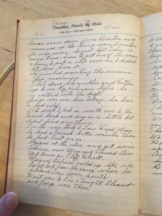 A man came down from Boson and measured up the living room furniture for slip covers, he just left when in came Russ Snow to get one of the same chairs to put a slip cover on. I didn’t let him have it.