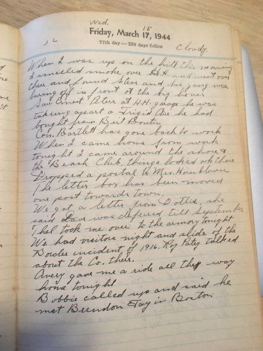 Saw Ernest Pewers at HH garage, he was taking apart a FrigidAir he had bought from Bert Boutin.