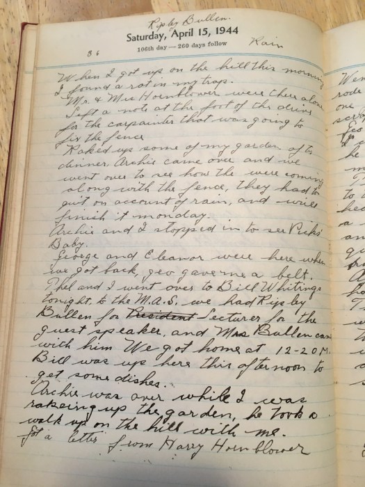 Thel and I went over to Bill Whitings tonight to the M.A.S., we had Ripley Bullen for Lecturer for the guest speaker and Mrs. Bullen came with him. We got home at 12-20 M.