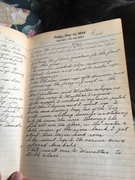 After supper I worked in my onion patch and then Eleanor and I went up to Bill’s herring trap, two of the Fry girls were slitting herrings and taking only the rowes, they were throwing the fish all over the place in the water and both sides of the river bank. I got about three dozen hard rows.