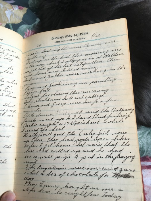 After dinner Thel and I and the Hathaway family went up to Island pond fishing. Archie caught a 17½ inch pickerel while I rowed the boat.