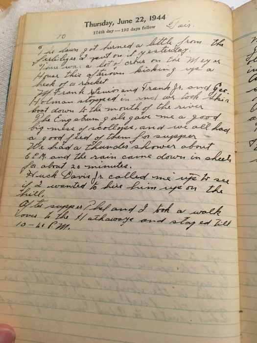 After supper Thel and I took a walk over to the Hathaways and stayed till 10-40 PM.
