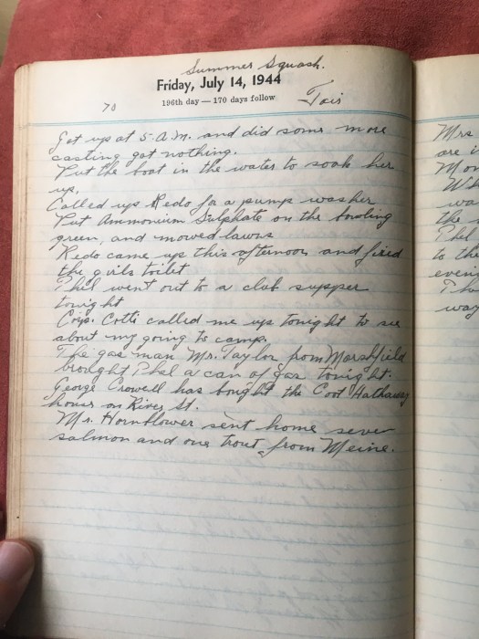 The gas man Mr. Taylor from Marshfield brought Thel a can of gas tonight.
