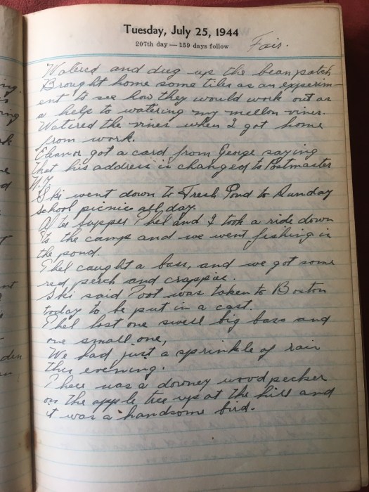 After supper Thel and I took a ride down to the camp and we went fishing in the pond.