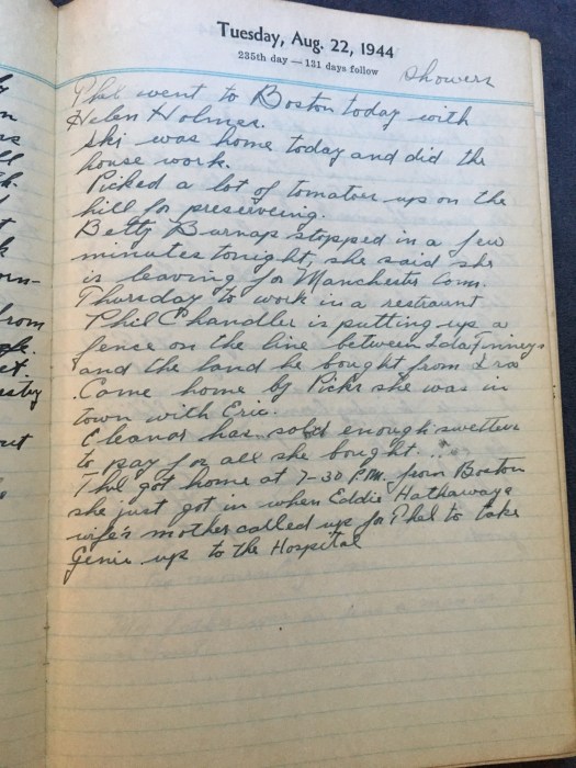 Thel got home at 7-30 PM from Boston, she just got in when Eddie Hathaways wife’s mother called up for Thel to take Genie up to the Hospital.