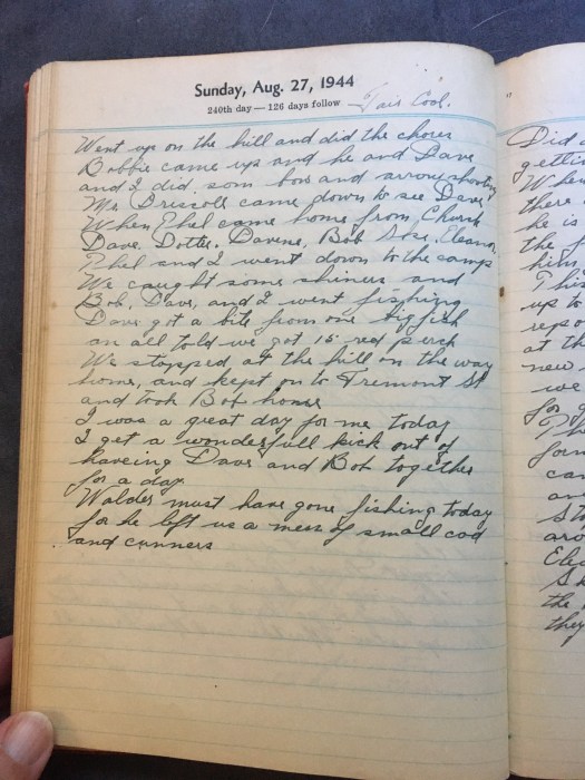 Walder must have gone fishing today for he left us a mess of small cod and canners.