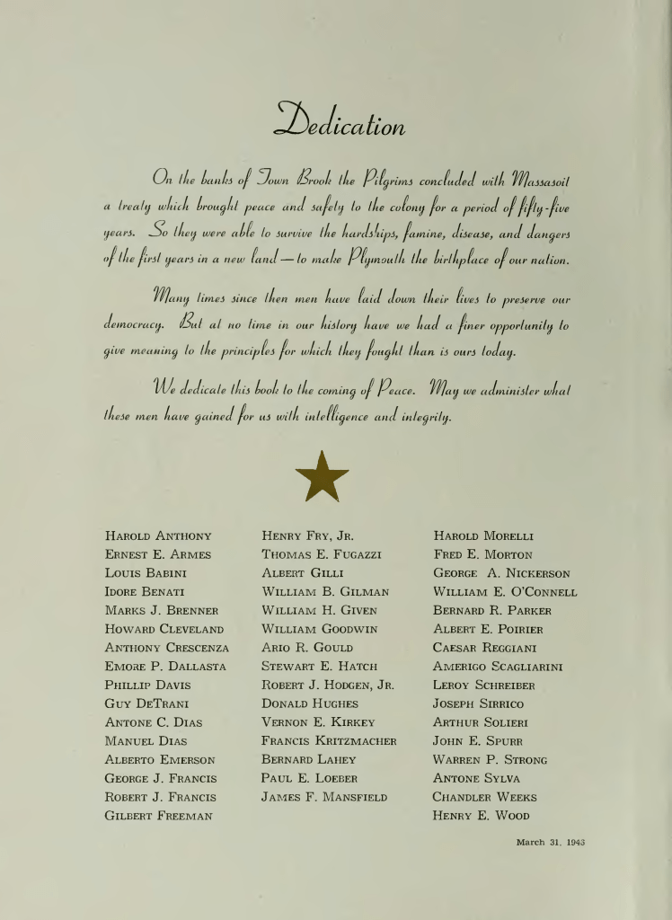 This image from the Plymouth High School, Plymouth, MA, Pilgrim, Yearbook, 1946 was sent by Conrad Covell and mentions Thomas E. Fugazzi.