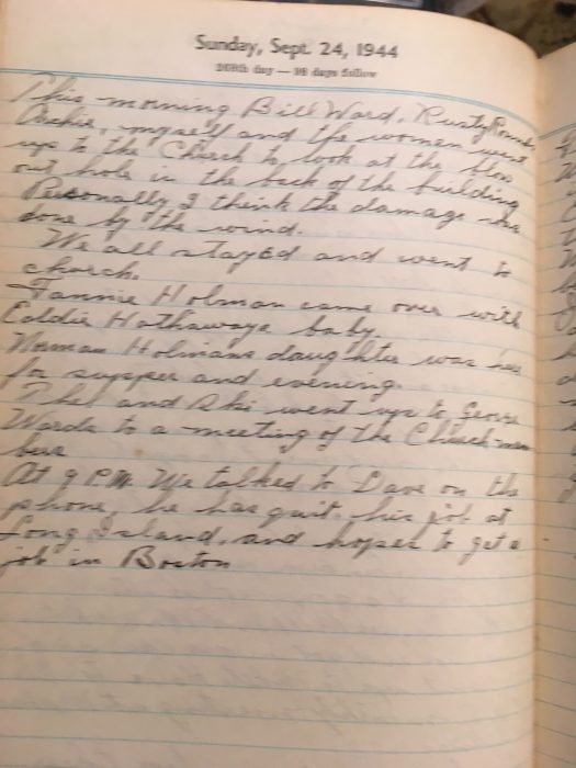 This morning Bill Ward, Rusty Rounds, Archie, myself and the women went up to the church to look at the blow out hole in the back of the building.