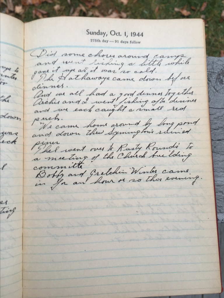 Archie and I went fishing after dinner and we each caught a small red perch.
