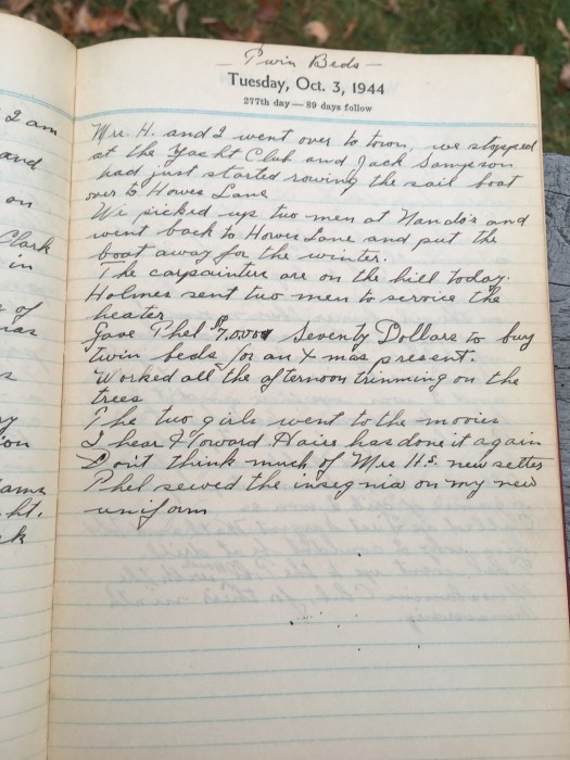 Mrs H and I went over to town, we stopped at the Yacht CLub and Jack Sampson had just started rowing the sail boat over to Howes Lane.