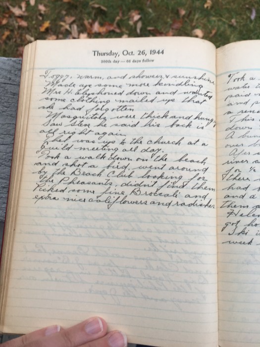 Took a walk down on the beach and shot a bird, went around by the Beach Club looking for the Pheasants, didnāt find them.