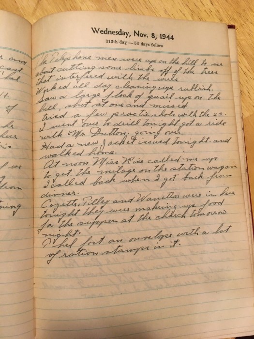 At noon Miss Rice called me up to get the mileage on the station wagon. I called back when I got back from dinner.