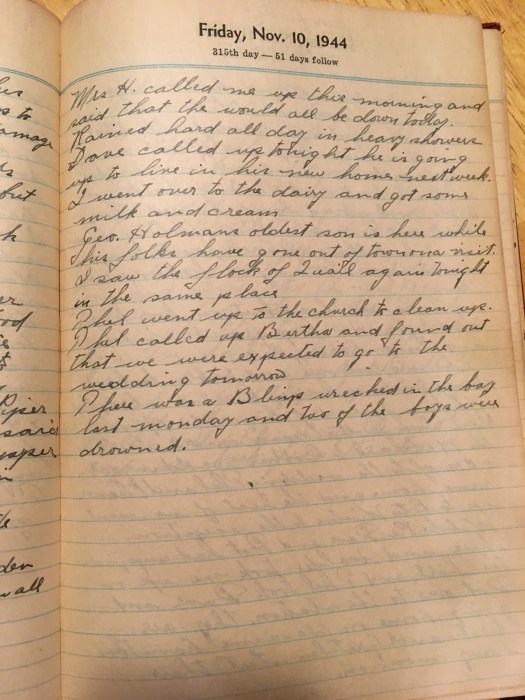 There was a Blimp wreck in the bay last Monday and two of the boys were drowned.