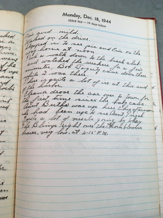 The Blimp right over the Hornblowers house, very low, at 11-15 P.M.