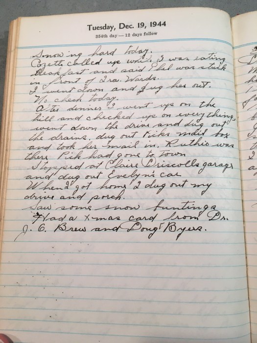 After dinner I went up on the hill and checked up on everything, went down the drive and dug out the drains, dug out Picks mail box and took her mail in. Ruthie was there, Pick had gone to town.
