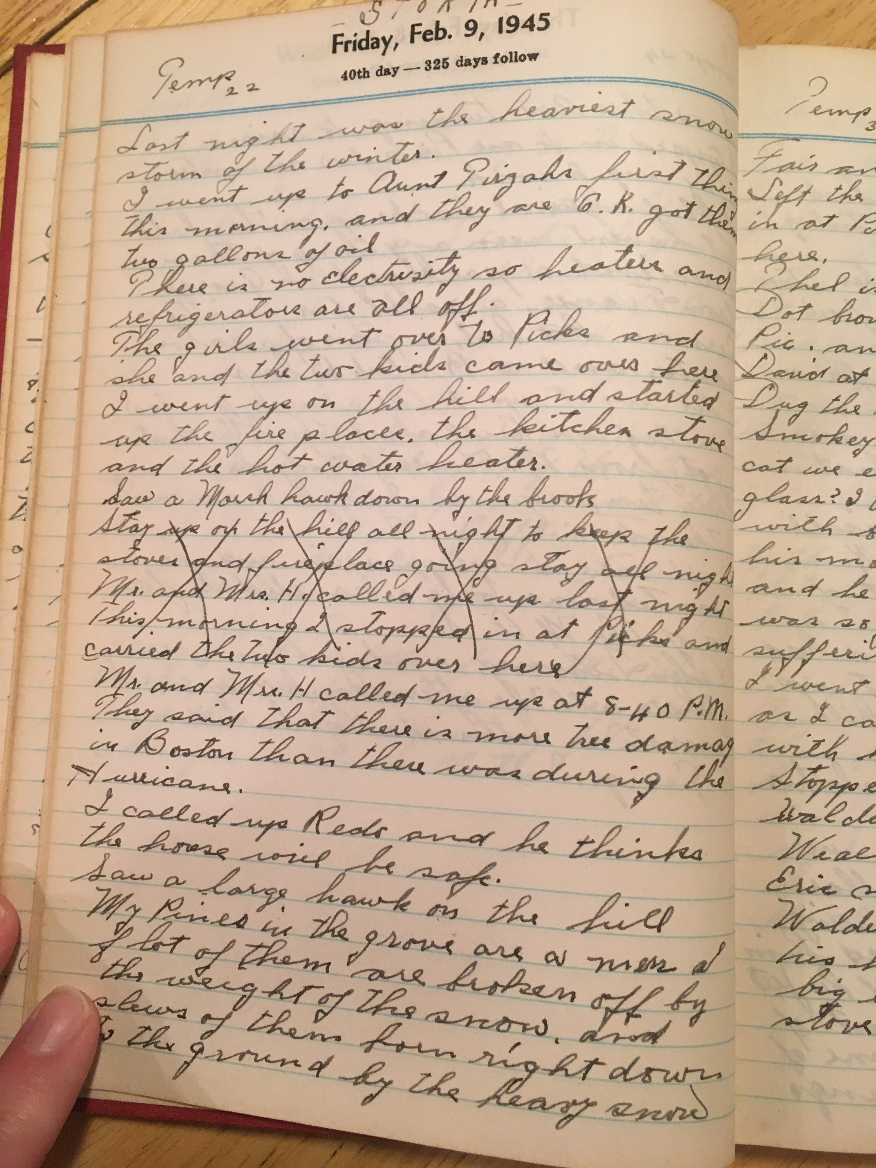 I went up on the hill and started up the fire places, the kitchen stove, and the hot water heater.