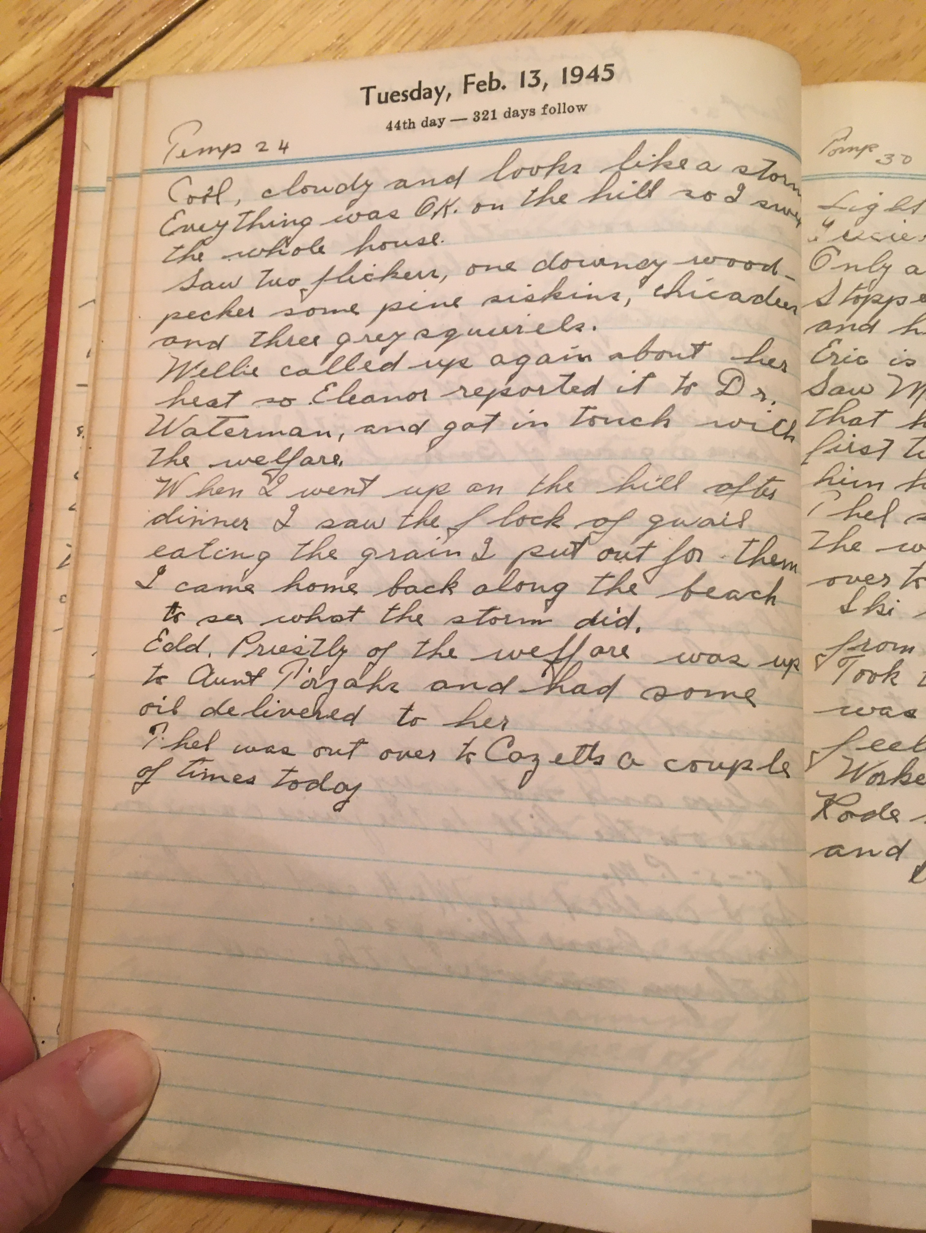 Edd. Priestly of the welfare was up to Aunt Tirzahs and had some oil delivered to her.