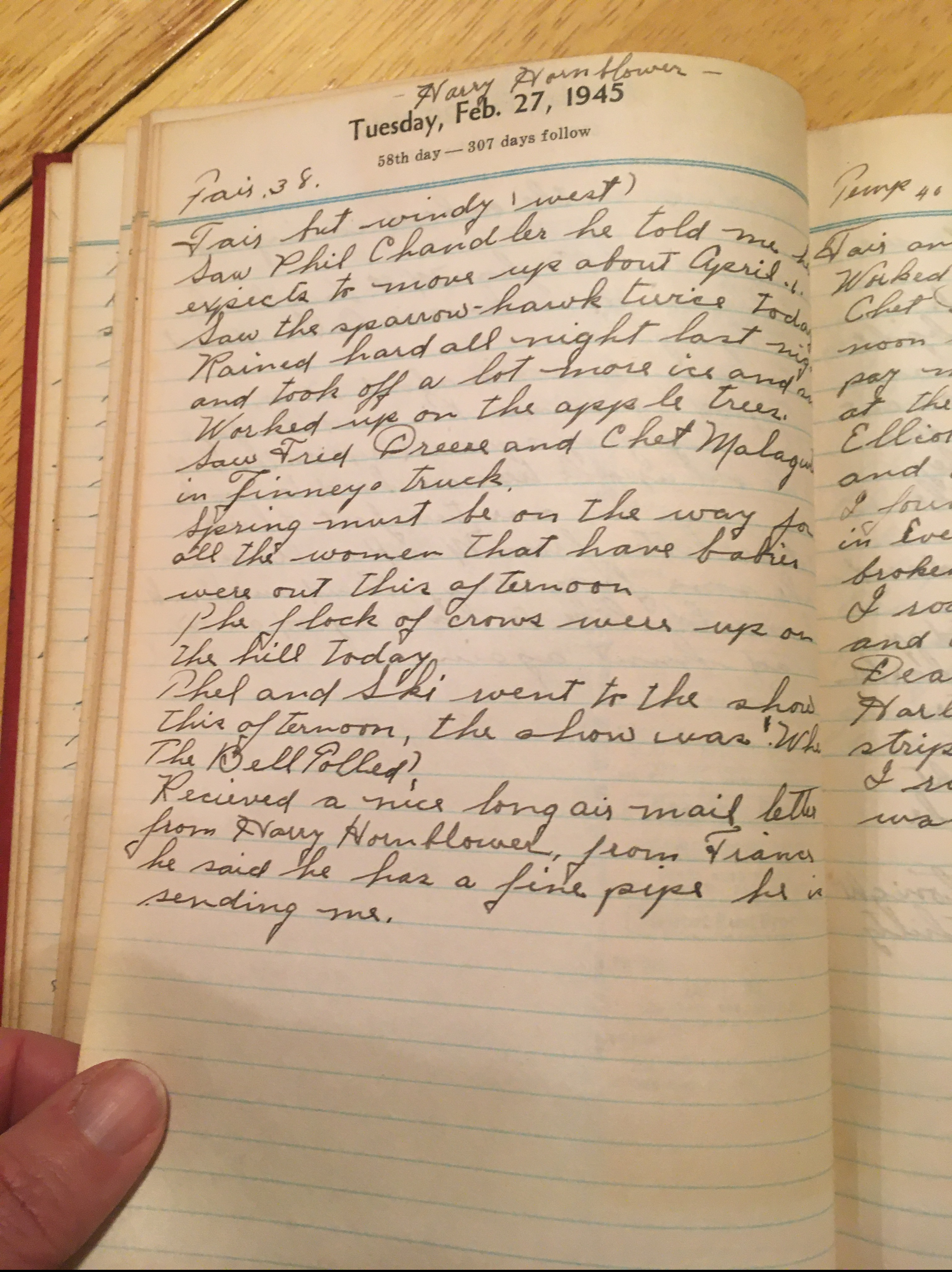 Received a nice long air mail letter from Harry Hornblower from France. He said he has a fine pipe he is sending me.