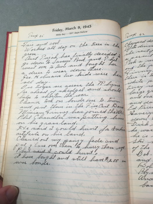 Eleanor took our bonds over to town and put them in the Five Cent Bank.