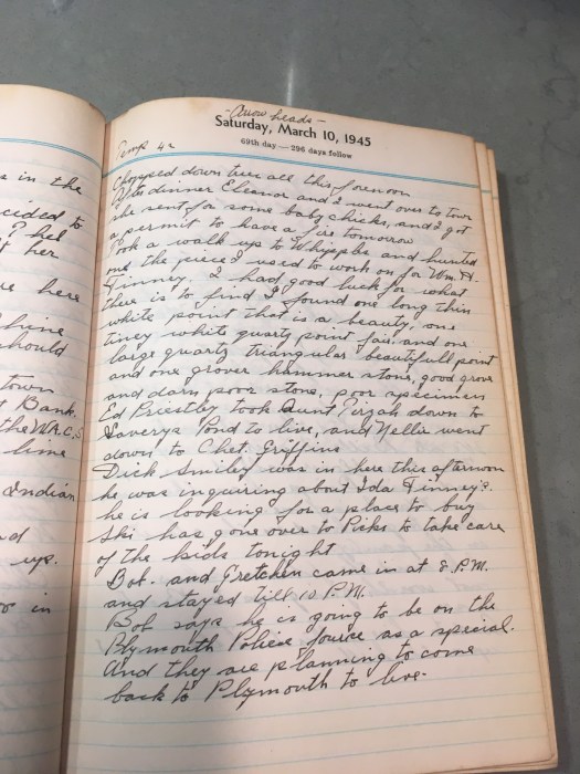 Took a walk up to Whipples and hunted on the piece I used to work on for Wm H Finney, I had good luck for what there is to find, I found one long thin white point that is a beauty, one tiny white quartz point fair and one large quartz hammer stone, good grove and darn poor stone, poor specimen.