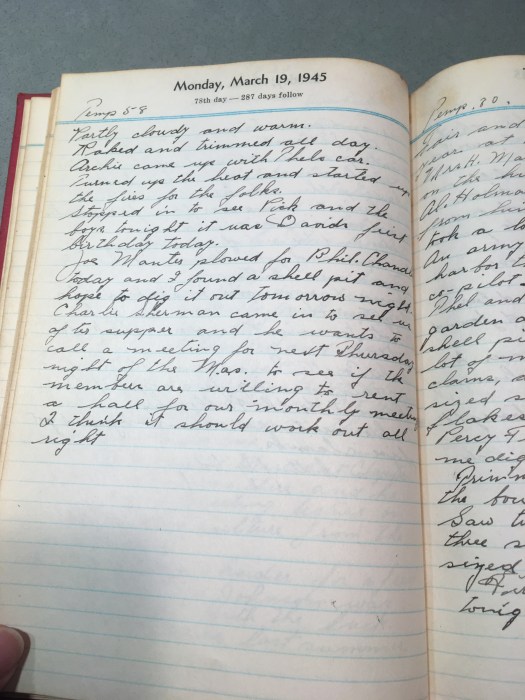 Charlie Sherman came in to see us after supper and he wants to call a meeting for next Thursday night of the M.A.S. to see if the members are willing to rent a hall for our monthly meeting. I think it should work out alright.