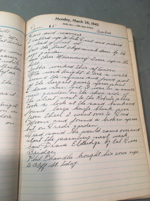 After work tonight I took a walk around the square and found part of the largest quartz spear point I have ever seen yet it was in a small new garden on the shore side of the street next to the Roberts place.