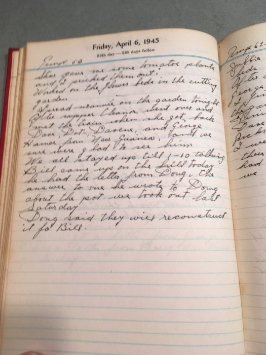 Bill came up on the hill today, he had the letter from Doug, the answer to one he wrote to Doug about the pot we took out last Saturday.