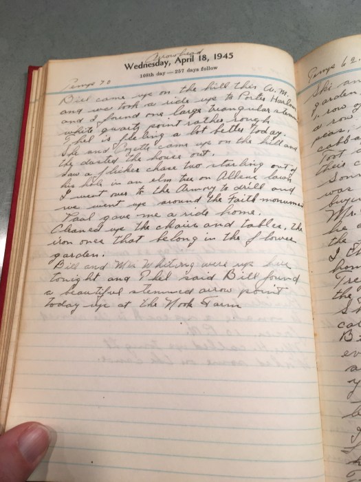 Bill and Mrs Whiting were up here tonight and Thel said Bill found a beautiful stemmed arrow point today up at the Nook Farm.