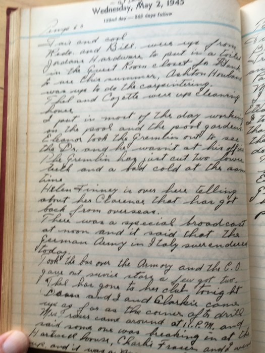 There was a special broadcast at noon and it said that the German Army in Italy surrendered today.