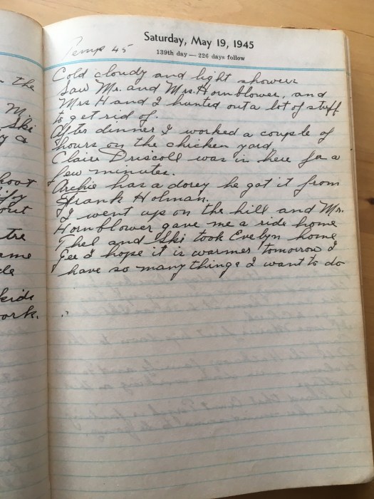 Saw Mr and Mrs Hornblower, and Mrs H and hunted out a lot of stuff to get rid of.