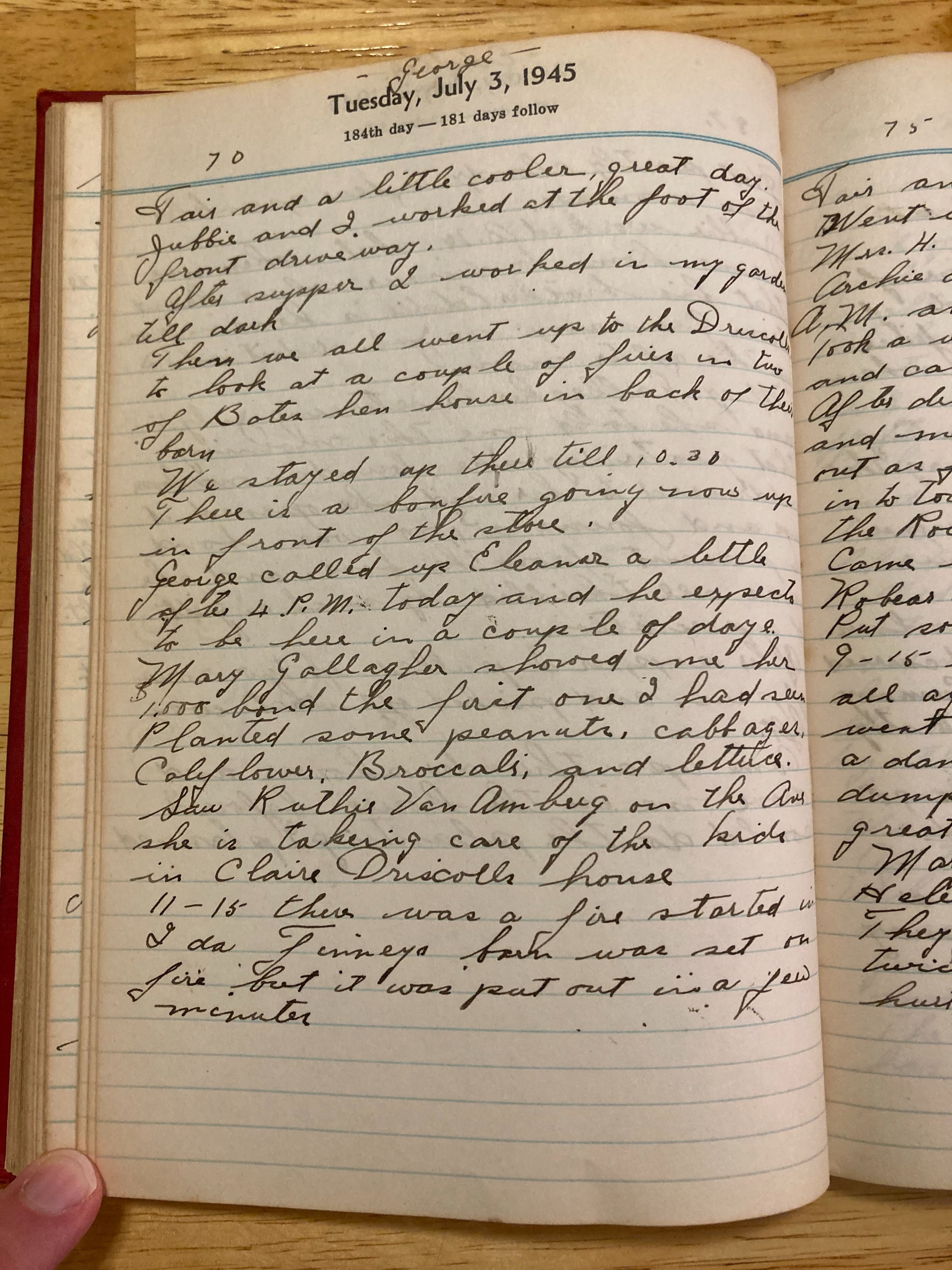 Then we all went up to the Driscolls to look at a couple of fires in two of Bates hen house in back of their farm.