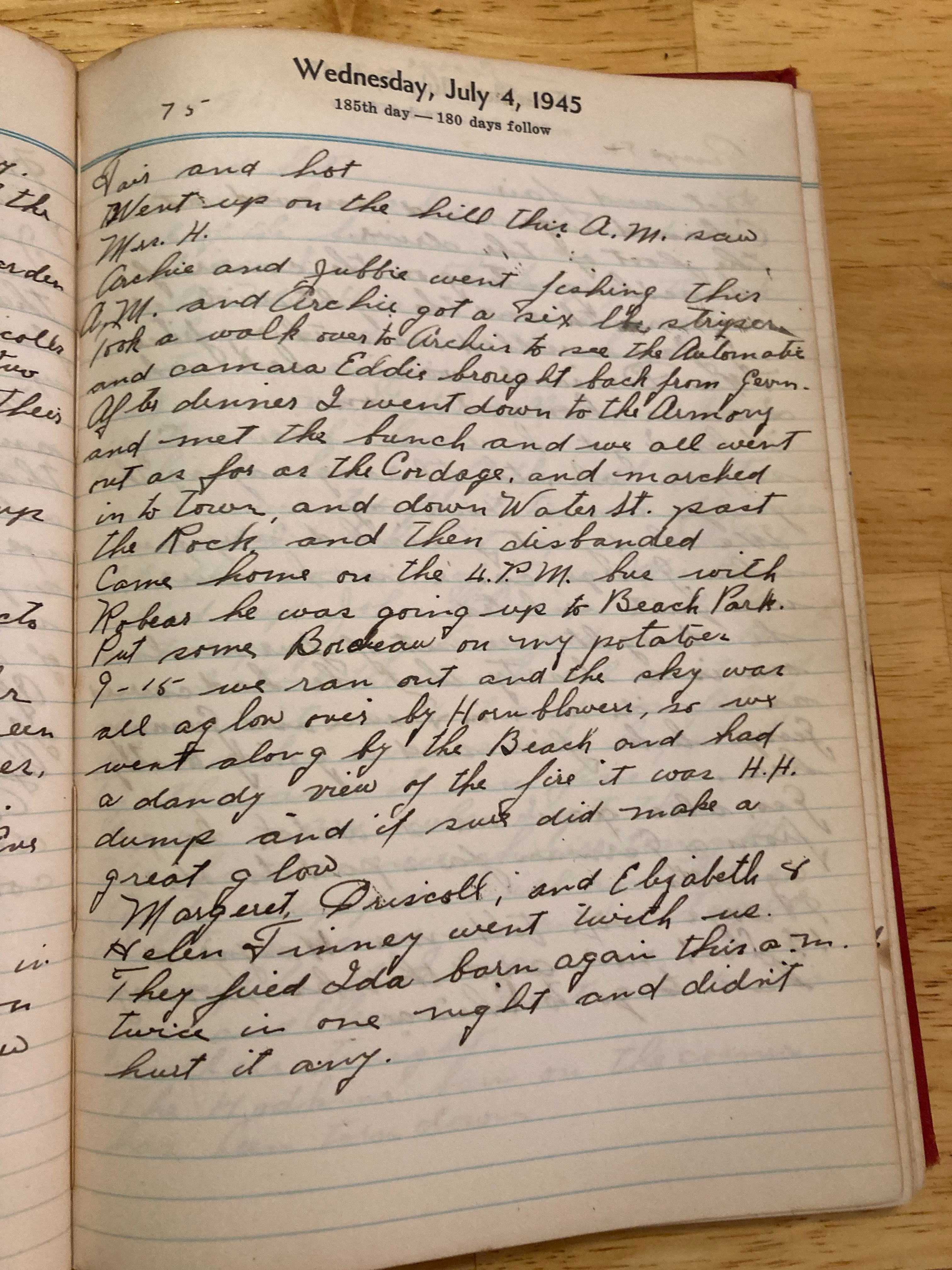 9-15 we ran out and the sky was all aglow over by Hornblowers so we went along by the Beach and had a dandy view of the fire it was HH dump and it sure did make a great glow.