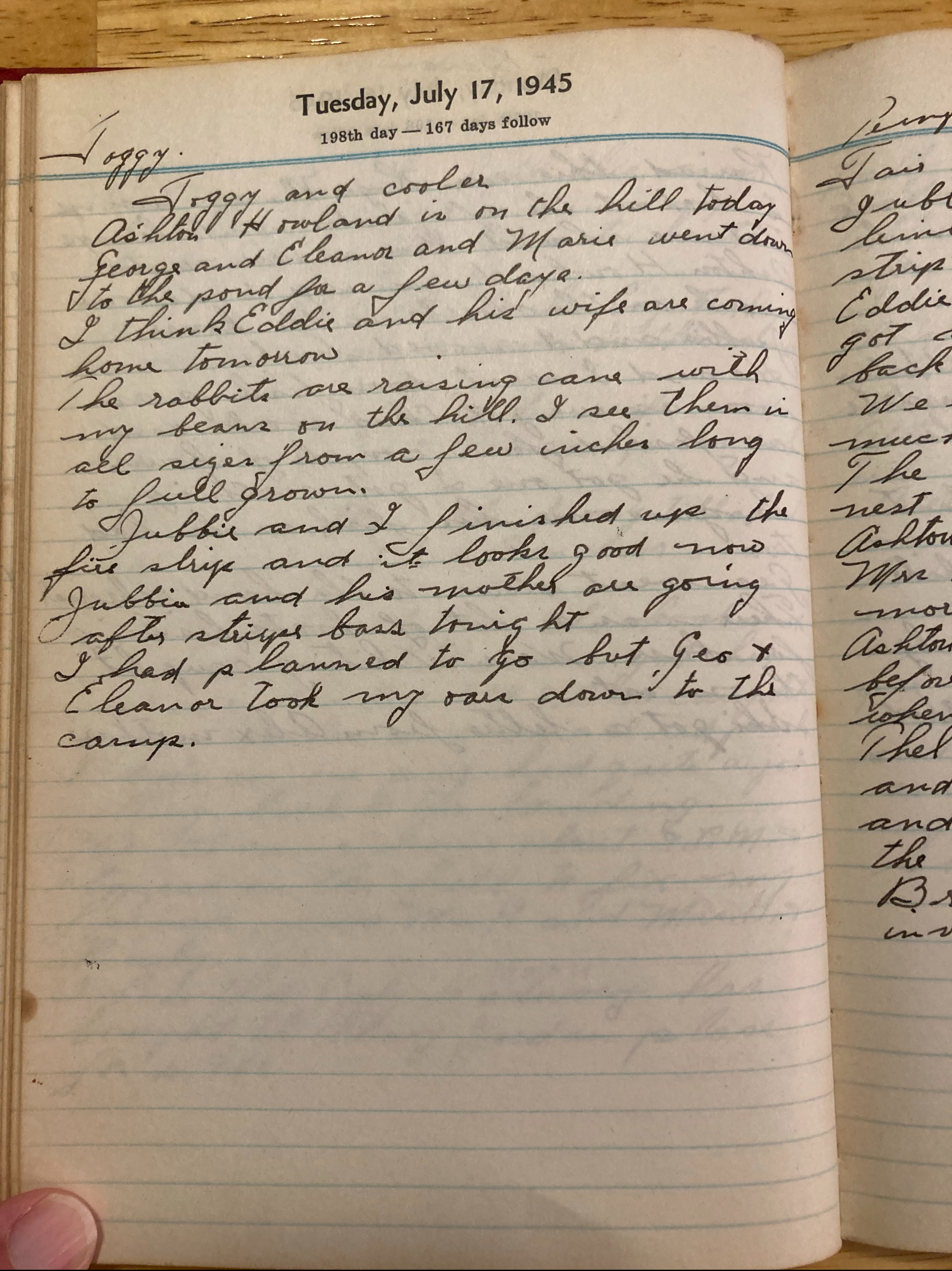 Jubbie and his mother are going after stripe bass tonight.