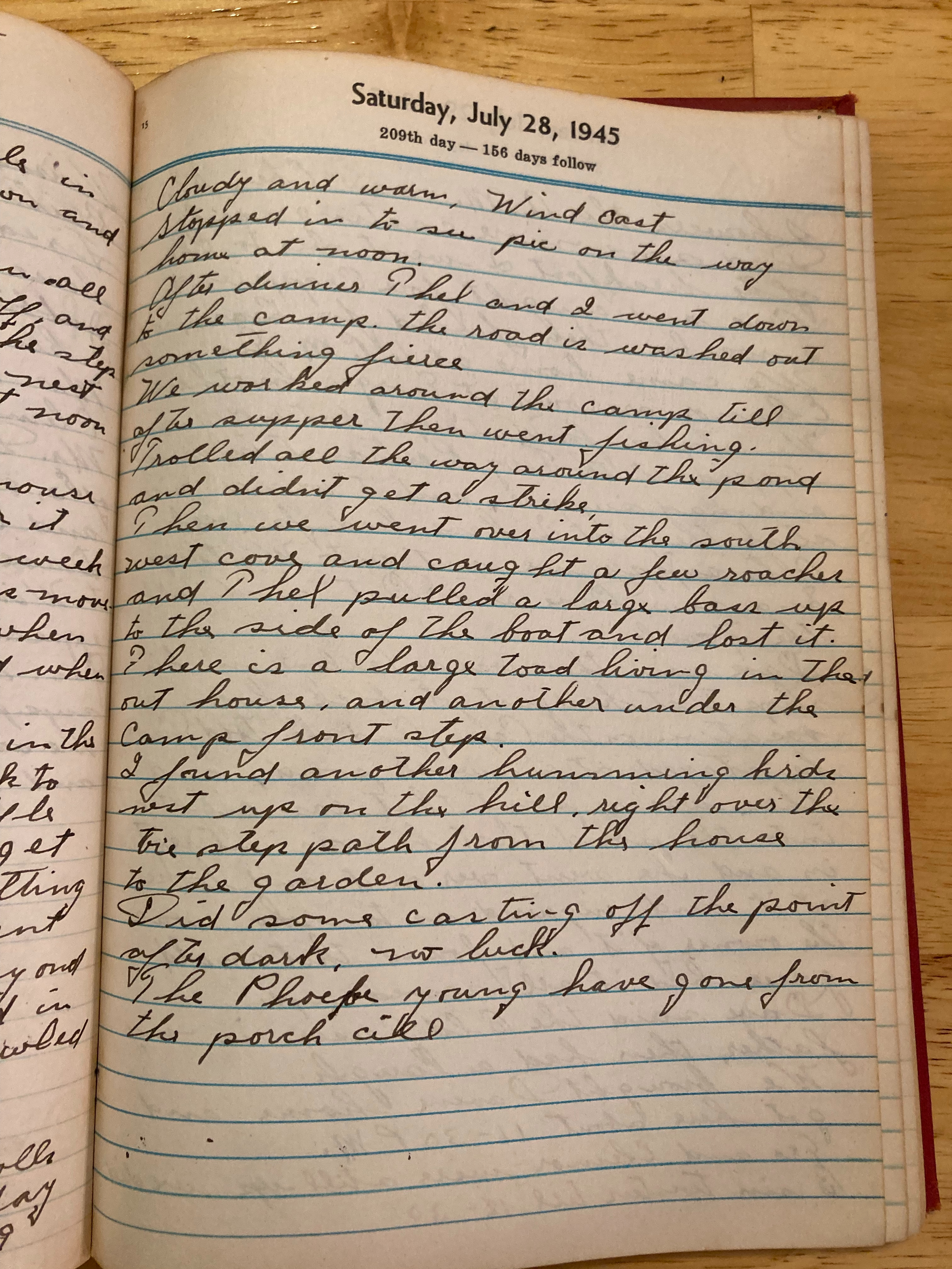 Then we went over into the south west cove and caught a few roaches and Thel pulled a large bass up to the side of the boat and lost it.